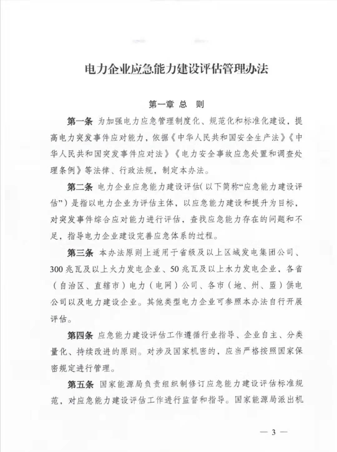 國家能源局印發(fā)《電力企業(yè)應急能力建設評估管理辦法》