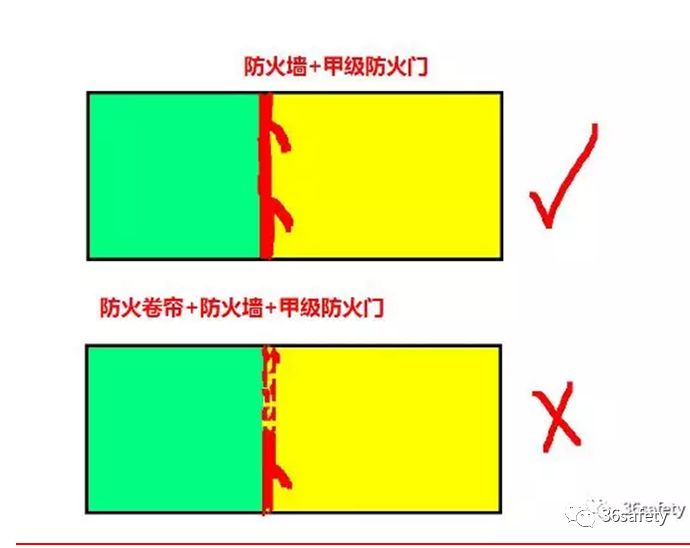 “當人員需要通過相鄰防火分區(qū)疏散時,相鄰兩個防火分區(qū)之間要嚴格采用防火墻分隔,不能采用防火卷簾、防火分隔水幕等措施替代”。