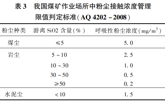 塵肺病是由于在職業(yè)活動中長期吸入生產(chǎn)性粉塵并在肺內(nèi)滯留而引起的以肺組織彌漫性纖維化為主的全身性疾病。據(jù)不完全統(tǒng)計,現(xiàn)在我國約有65萬塵肺病人,其中煤工塵肺和矽肺約占85%~90%,因塵肺病死亡者約有20萬人,每年還陸續(xù)發(fā)生1萬~1.5萬塵肺新病例,塵肺病也因此被稱為“隱性礦難”。近年來,我國在防止粉塵危害、保護(hù)工人健康、預(yù)防塵肺發(fā)生方面做了大量的工作,也取得了顯著的成績。大中型礦山和工廠塵肺的發(fā)病率已明顯下降,塵肺的發(fā)病工齡明顯延長,塵肺病人得到了相應(yīng)的治療和安置,生活質(zhì)量有了明顯的提高。但是,我國仍然是塵肺危害最嚴(yán)重的國家,要達(dá)到消除塵肺的目標(biāo)仍是“任重而道遠(yuǎn)”。而相比之下,美國的煤礦塵肺病從上世紀(jì)70年代起就得到了很好的控制,并一直持續(xù)在基本穩(wěn)定的狀態(tài)下,這其中有許多的思路和經(jīng)驗都值得借鑒。據(jù)MSHA((美國聯(lián)邦礦山安全與健康監(jiān)察局)數(shù)據(jù)顯示,美國自1968年起因塵肺病死亡的煤礦工人總計七萬六千多人,而聯(lián)邦政府在針對此項傷亡所作出的補(bǔ)償就有約450億。表1為美國1970~2014年塵肺病發(fā)病情況的統(tǒng)計數(shù)據(jù),數(shù)據(jù)來源是MSHA從美國各地各類煤礦收集的煤礦工人胸透檢查結(jié)果,直觀地表現(xiàn)出美國近幾十年來煤礦工人塵肺病的控制情況:從以上數(shù)據(jù)可以看出,美國煤礦塵肺病發(fā)病情況長久以來均穩(wěn)定控制在5%以下,說明其對煤礦塵肺病防治、粉塵濃度控制方面已有了豐富的經(jīng)驗,我國近幾年塵肺病的情況雖然也有所控制,發(fā)病率得以很好的抑制,但新增病例屢屢攀升,防治過程中仍存在著職工診斷難、防治有關(guān)標(biāo)準(zhǔn)不健全、執(zhí)行力度不夠等諸多問題。因此了解其他國家的防控現(xiàn)狀并從中借鑒經(jīng)驗是可行的。2 標(biāo)準(zhǔn)規(guī)定的異同在煤礦粉塵濃度的判定標(biāo)準(zhǔn)方面,中美之間也存在著很多不同之處,不僅僅是限值方面,規(guī)定的表達(dá)方式以及粉塵的測量方式上也有著很多的不同之處。我國對于粉塵濃度的限值根據(jù)游離SiO2含量的不同范圍規(guī)定了總粉塵和呼吸性粉塵的時間加權(quán)平均容許濃度,而美國的限值則是根據(jù)粉塵中游離二氧化硅的濃度是否高于5%規(guī)定了呼吸性粉塵的時間加權(quán)平均濃度,且甚至直接規(guī)定了二氧化硅的濃度含量的限制,具體規(guī)定如下:(1)我國對于煤礦作業(yè)場所粉塵接觸濃度管理限值的有關(guān)規(guī)定如下:1)我國國家標(biāo)準(zhǔn)中所規(guī)定的煤礦作業(yè)場所粉塵接觸濃度管理限值的判定標(biāo)準(zhǔn)如下表:2)我國煤礦安全規(guī)程中所規(guī)定的煤礦作業(yè)場所粉塵中接觸濃度標(biāo)準(zhǔn)如下表:(2)美國對于煤礦作業(yè)場所粉塵接觸濃度管理限值的判定標(biāo)準(zhǔn):美國對于煤礦粉塵濃度的限值均是用8小時時間加權(quán)平均濃度的概念來表述,并且大部分的濃度限值是針對不同游離二氧化硅含量對呼吸性粉塵作出的規(guī)定,也有個別限值是針對粉塵中游離二氧化硅含量直接作出的規(guī)定。1)美國聯(lián)邦礦山安全與健康監(jiān)察局(MSHA)制定的呼吸性粉塵濃度標(biāo)準(zhǔn)是當(dāng)粉塵中游離SiO2含量小于5%時,呼吸性粉塵TWA限值為2mg/m3;當(dāng)粉塵中游離SiO2含量大于5%時,呼吸性粉塵的TWA限值為一個計算公式,其大小取決于粉塵中游離二氧化硅的含量,即(10mg/m3)/(%SiO2+2)。而已經(jīng)檢測出患有一期塵肺病的工人,有權(quán)選擇在接觸呼吸性粉塵濃度不超過1.0mg/m3的工作崗位進(jìn)行工作。2)美國職業(yè)安全與衛(wèi)生法案(OSHA)規(guī)定當(dāng)粉塵中的游離SiO2含量小于5%時,呼吸性粉塵的TWA限值為2.0mg/m3;當(dāng)粉塵中游離SiO2含量大于5%時,游離二氧化硅的含量TWA限值為0.1mg/m3。3)美國ACGIH的規(guī)定與OSHA的規(guī)定并無不同之處,也是當(dāng)粉塵中游離二氧化硅含量大于5%時,游離二氧化硅的含量TWA限值為0.1mg/m3,當(dāng)粉塵中游離二氧化硅含量小于5%時,呼吸性粉塵的TWA限值為2mg/m3。4)值得注意的是美國職業(yè)安全與衛(wèi)生研究所(NIOSH)的規(guī)定,雖然其目前的規(guī)定與以上規(guī)定并無不同,但自MSHA的法案頒布時就建議此規(guī)定的有效期限截止到2016年8月,自此之后給出的呼吸性粉塵濃度限值建議為1.0mg/m3,此建議低于所有國家目前的呼吸性粉塵濃度限值標(biāo)準(zhǔn),雖然對該項建議的數(shù)值以及時間上采納與否尚有爭論,但美國仍有在未來兩到三年內(nèi)調(diào)整呼吸性粉塵濃度限值標(biāo)準(zhǔn)規(guī)定的趨勢,并且也正在通過大量的數(shù)據(jù)調(diào)查論證限值將下調(diào)的幅度為多少較為合適,這些都說明美國有在近幾年內(nèi)將煤礦呼塵控制水平提高到一個新階段的計劃。5)2014年7月29日,美國礦山安全健康局發(fā)布了民事處罰評估規(guī)定草案。這個草案對現(xiàn)行的民事處罰規(guī)定進(jìn)行修訂,目的是簡化安全健康違法行為的評估標(biāo)準(zhǔn),并日益重視更加嚴(yán)重的安全健康條件,從而改善礦工的安全健康狀況。該規(guī)定草案將簡化程序,在安全監(jiān)察員開具處罰單和通知的工作中,提高一致性、客觀性