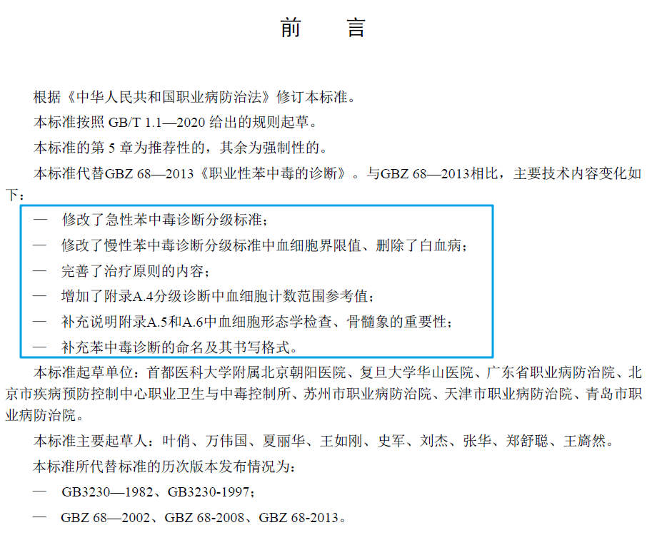 NEW | 職業(yè)性苯中毒診斷標(biāo)準(zhǔn)更新