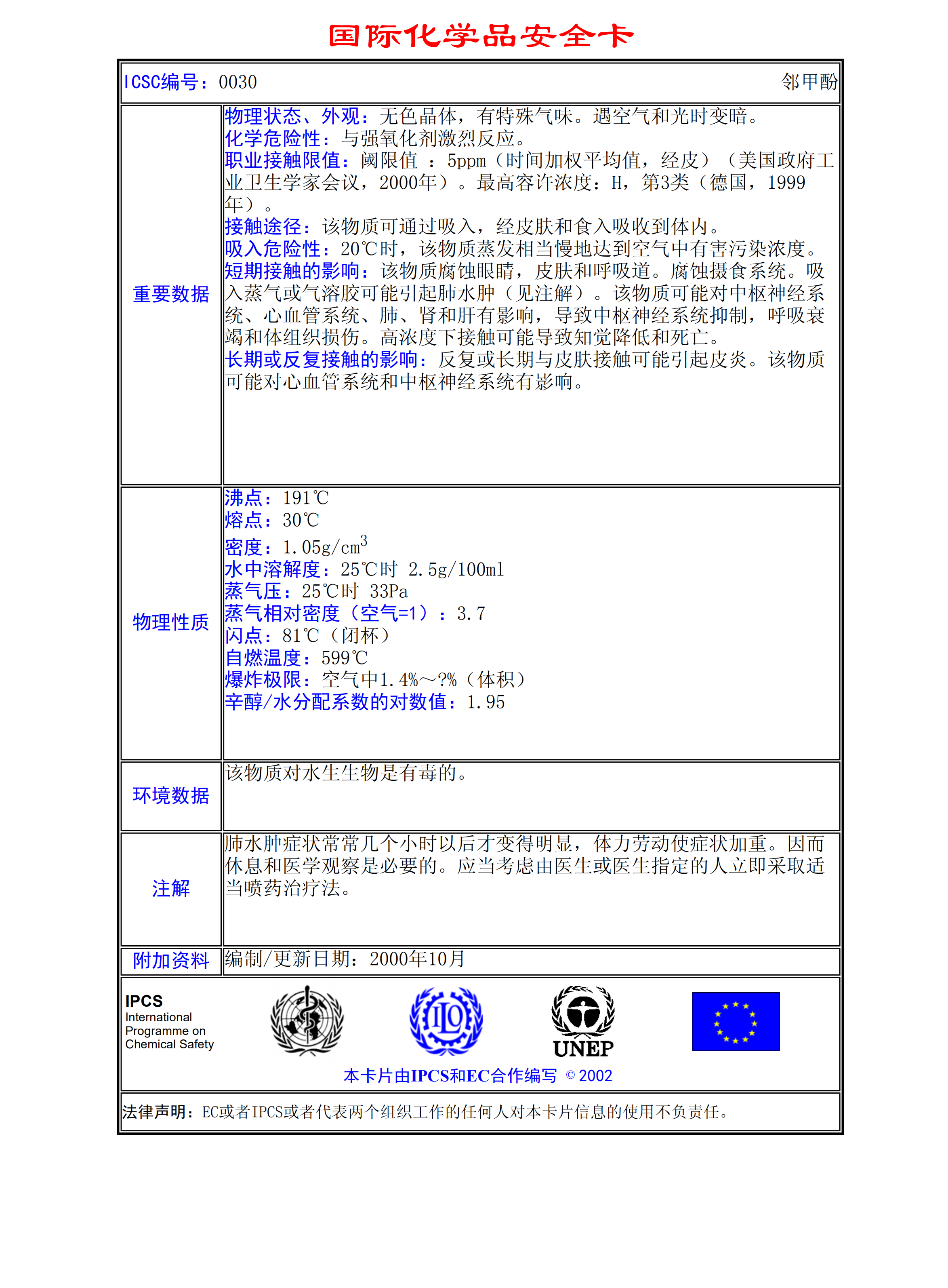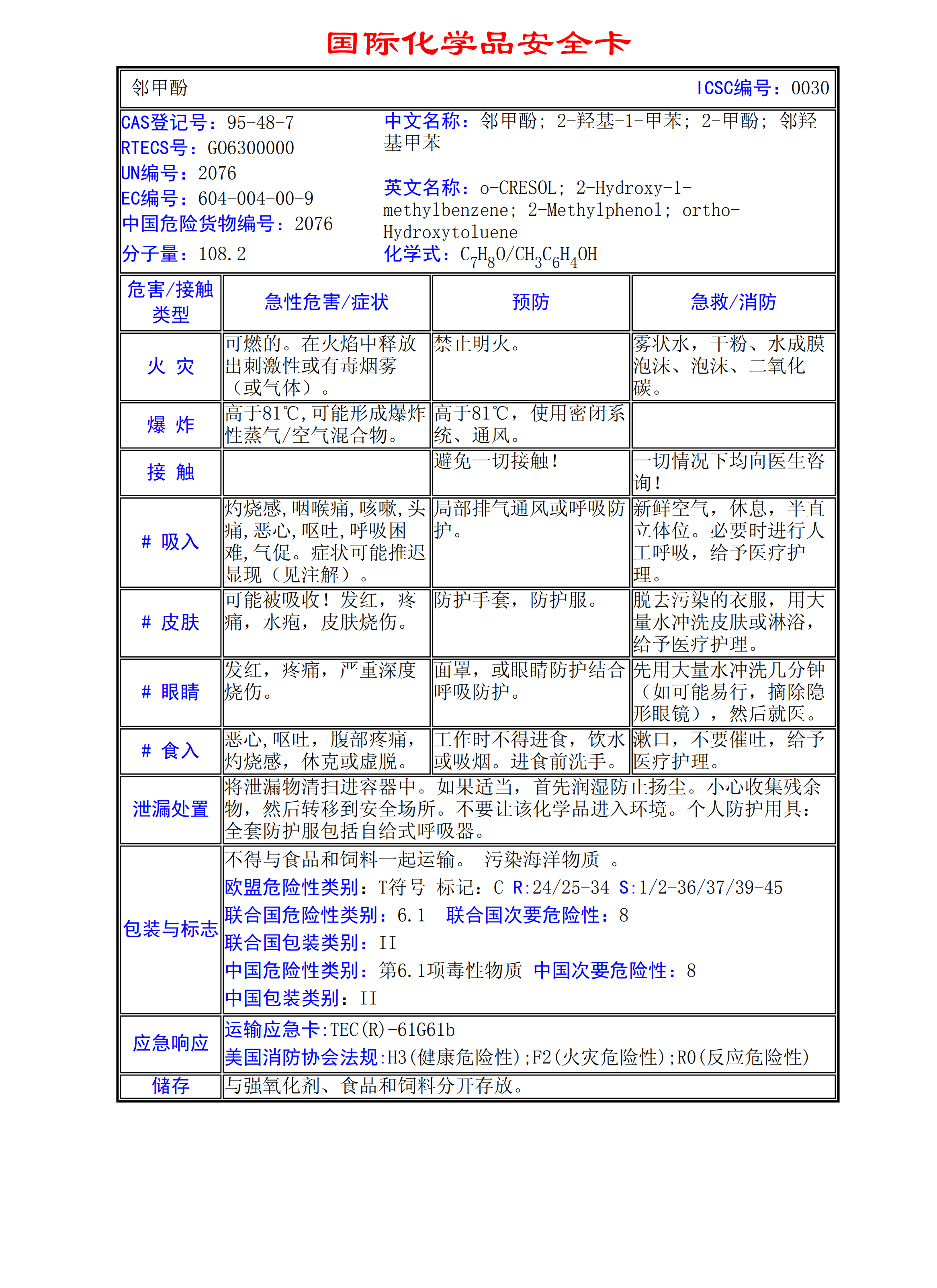 鄰甲酚MSDS