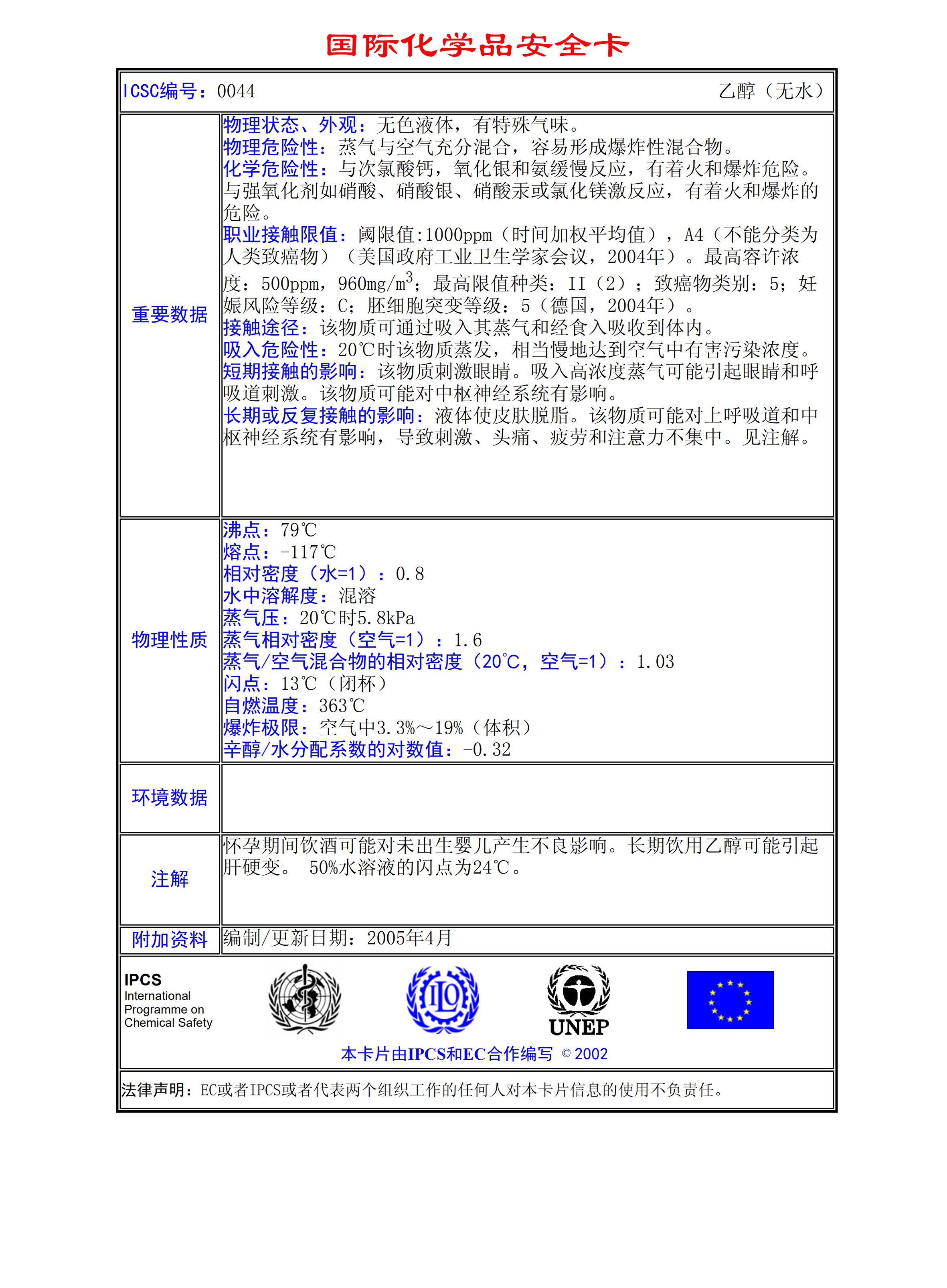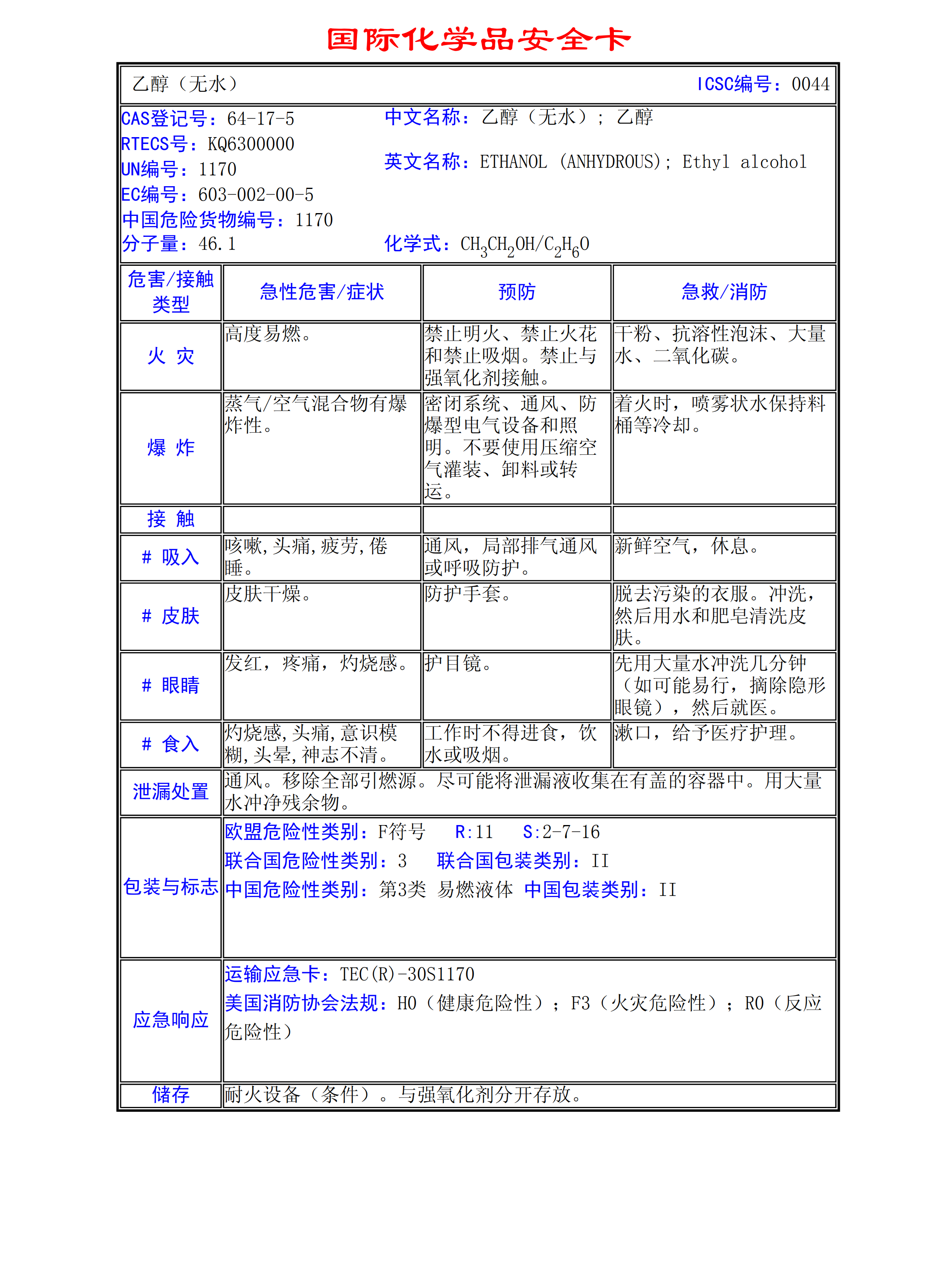 乙醇(無水)MSDS