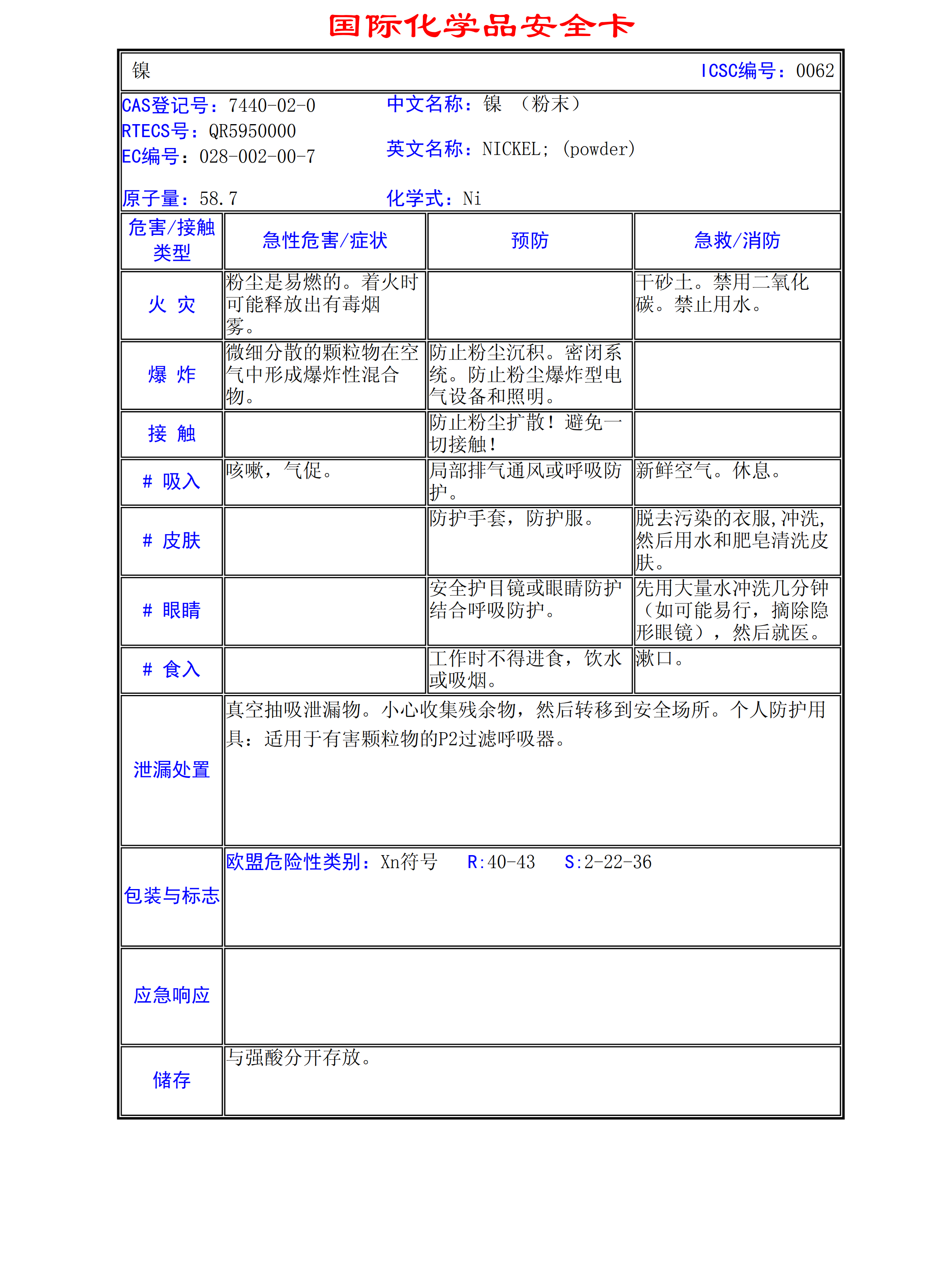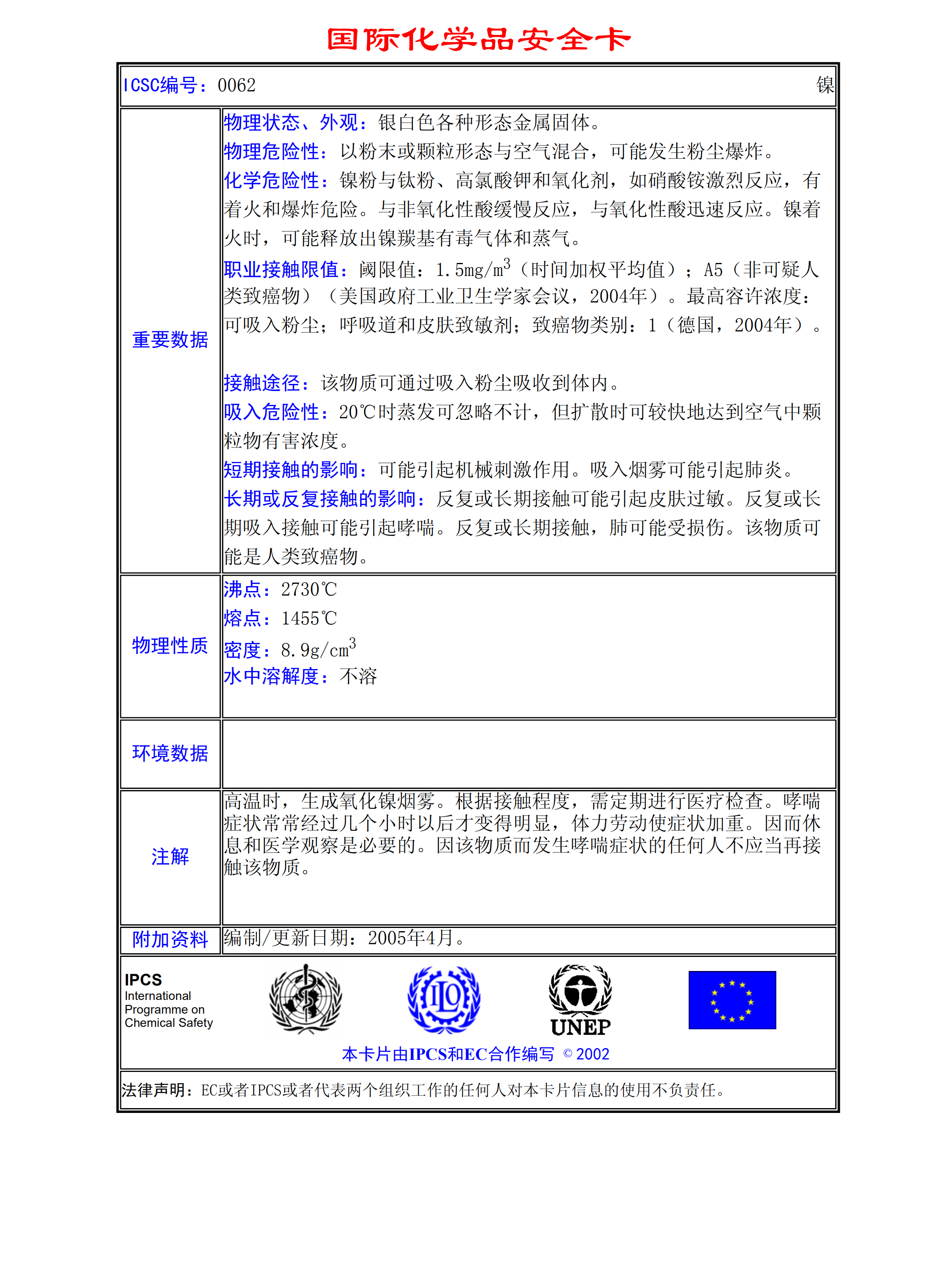 鎳MSDS