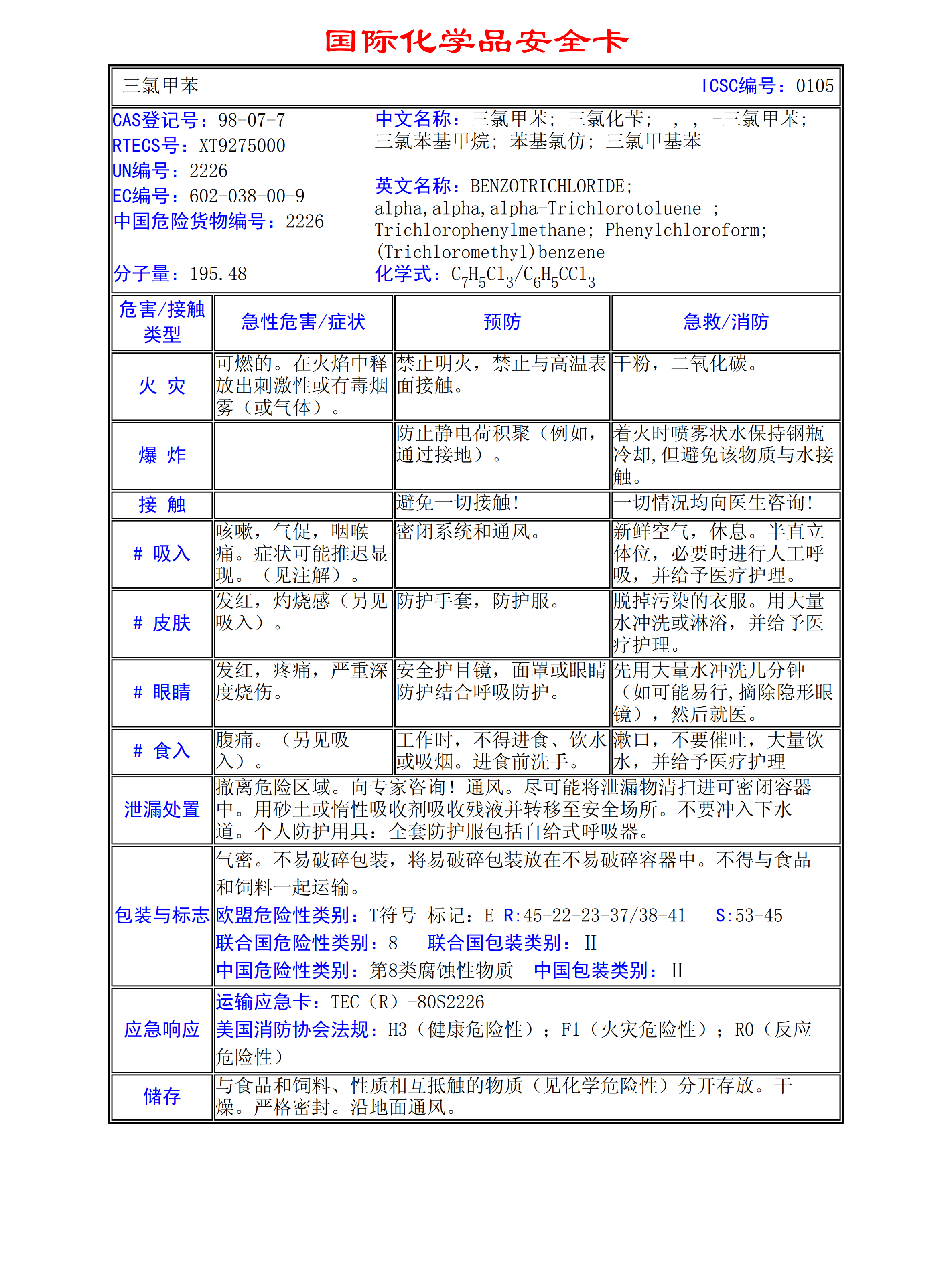 三氯甲苯MSDS
