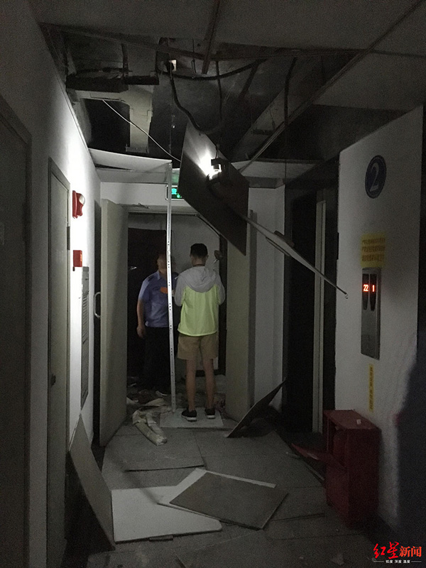 業(yè)主們紛紛跑出門,發(fā)現(xiàn)該住宅樓二樓的過道上,天花板垮了一地,門板、玻璃倒落在地上,二樓一住戶家中門開著,爆炸聲由此傳出?!耙晃蛔艉鸵晃槐0彩芰藗R上打120送去了醫(yī)院?!币晃蛔舴Q。