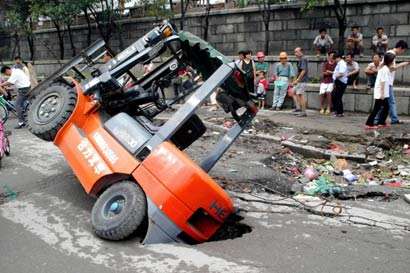 工人企圖阻止叉車(chē)傾翻反被壓死視頻