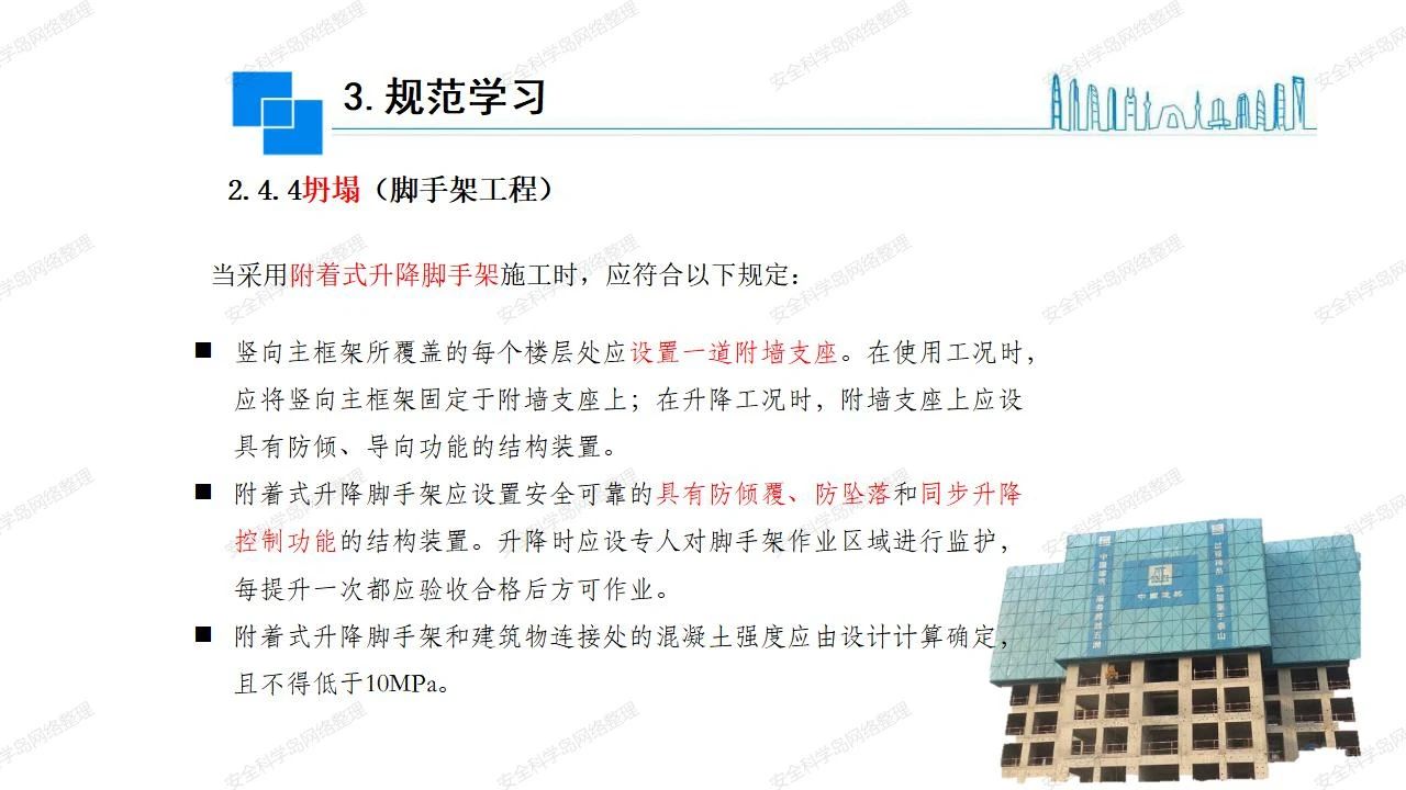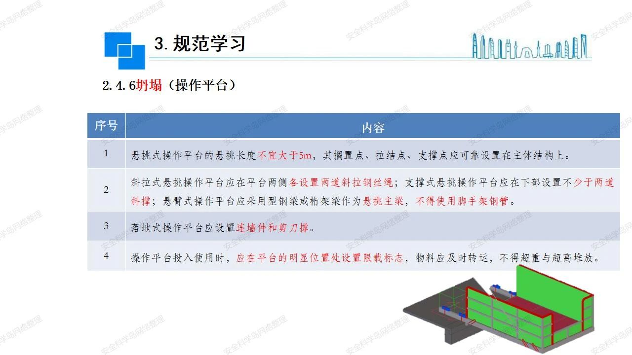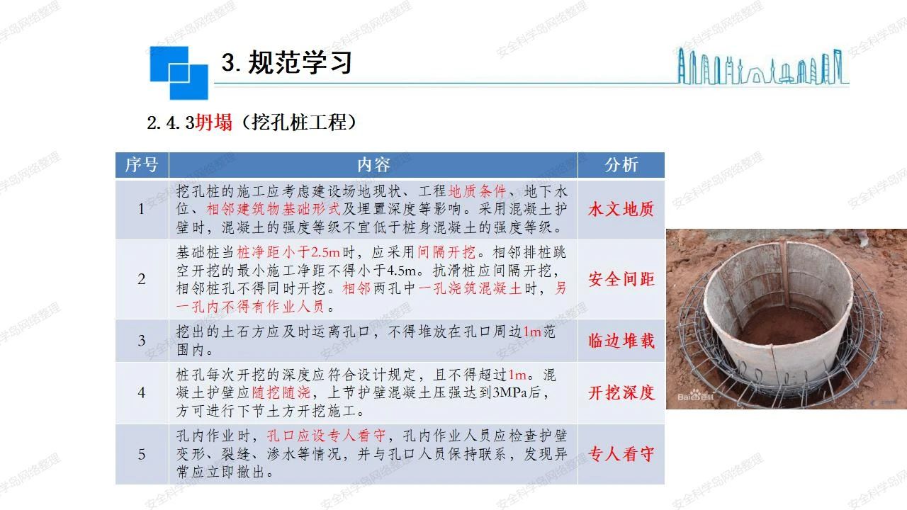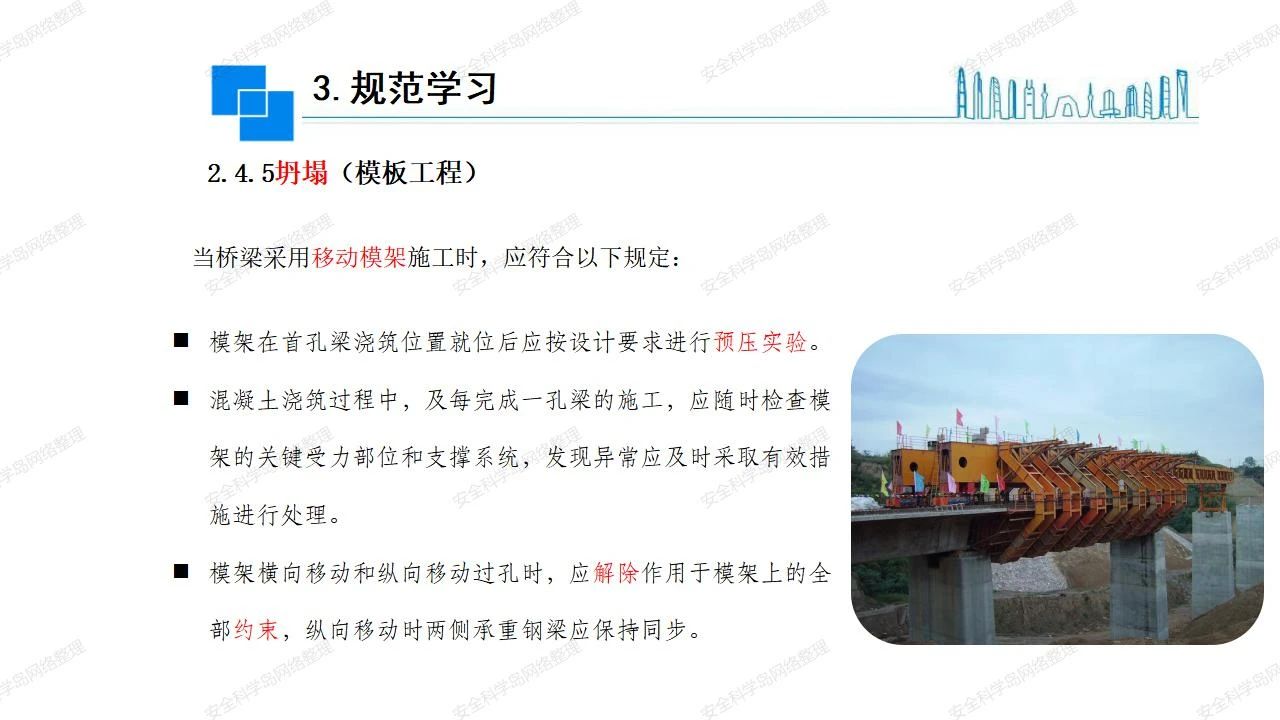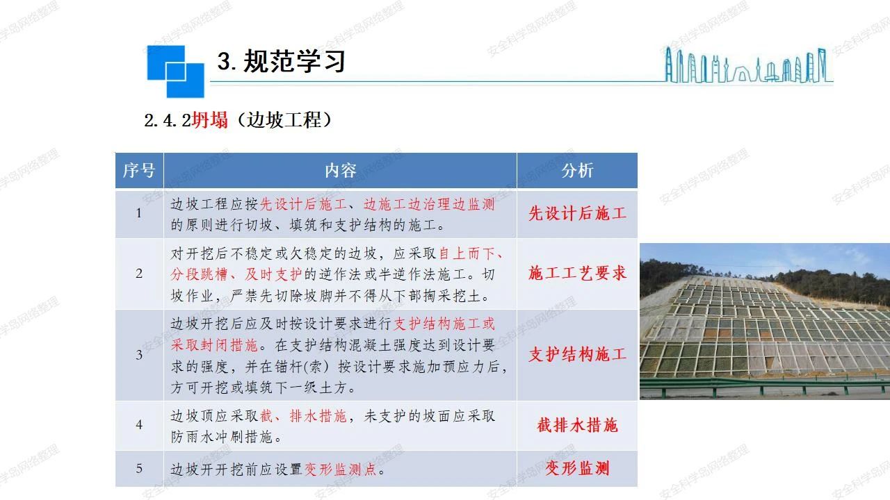 那么,坍塌事故發(fā)生的原因何在? (1)工程結(jié)構(gòu)設(shè)計(jì)不合理或計(jì)算失誤。 (2)施工前沒有編制切實(shí)可行的施工組織設(shè)計(jì)和專項(xiàng)施工方案,未做具體技術(shù)安全措施交底,特定施工項(xiàng)目未經(jīng)專家評審論證。 (3)腳手架、模板支撐、起重設(shè)備結(jié)構(gòu)設(shè)計(jì)不合理或計(jì)算失誤。 (4)建筑物結(jié)構(gòu)質(zhì)量低劣,安全性能差,地基不穩(wěn)定,不均勻沉降。 (5)建筑物結(jié)構(gòu)支撐連接(焊接)不牢固,超載、外力沖擊或嚴(yán)重偏心載荷造成失穩(wěn)等。 (6)腳手架及高大模板支架架體結(jié)構(gòu)不符合設(shè)計(jì)與規(guī)范要求,整體安全穩(wěn)定性差、超載或嚴(yán)重偏心荷載,遇外力沖擊或振動,不按程序拆除架體等因素造成失穩(wěn)等。 (7)基坑、土石方挖土?xí)r土壁不按規(guī)定留設(shè)邊坡(甚至負(fù)坡度),缺乏支護(hù)或支護(hù)不良,土質(zhì)不良或出現(xiàn)地下水、地表水的滲透,土壁經(jīng)不起重載側(cè)壓力或遇外力振動、沖擊等因素造成土壁失穩(wěn)滑坡坍塌。 (8)起重設(shè)備技術(shù)安全性能差,結(jié)構(gòu)強(qiáng)度不夠,安全防護(hù)裝置不完善,垂直起重機(jī)與建筑物拉結(jié)差,出現(xiàn)超載、碰撞、升降過度或違章操作等原因,造成起重設(shè)備倒塌。 (9)現(xiàn)場作業(yè)環(huán)境不良,安全防護(hù)設(shè)施缺乏。 (10)施工現(xiàn)場管理松弛,各項(xiàng)質(zhì)量、安全管理制度流于形式。 (11)片面追求經(jīng)濟(jì)利益,偷工減料,施工質(zhì)量差。 (12)施工隊(duì)伍素質(zhì)差,不執(zhí)行法規(guī)、標(biāo)準(zhǔn),違章指揮、違章作業(yè),思想上存在盲目性、冒險性、隨意性。 如何預(yù)防坍塌事故? (1)根據(jù)設(shè)計(jì)與規(guī)范要求,認(rèn)真編制施工組織設(shè)計(jì)和專項(xiàng)施工技術(shù)方案、應(yīng)急預(yù)案,做好特定施工項(xiàng)目專家評審論證及技術(shù)安全交底工作。 (2)支架、腳手架等搭設(shè)完成后應(yīng)組織相關(guān)部門驗(yàn)收。支架還應(yīng)按方案要求進(jìn)行堆載預(yù)壓。 (3)嚴(yán)格控制模板支架、腳手架等承受的荷載,模板、腳手架及其支撐體系的施工荷載應(yīng)做到均勻分布,并不得超過設(shè)計(jì)要求。嚴(yán)禁超載、對構(gòu)筑物進(jìn)行外力沖擊或偏心載荷。 (4)基坑、土石方挖土?xí)r土壁按規(guī)定留設(shè)邊坡,嚴(yán)格按照設(shè)計(jì)坡度進(jìn)行放坡開挖,進(jìn)行有效支護(hù)和排水,并設(shè)置專人對邊坡穩(wěn)定性進(jìn)行檢測?;討?yīng)基坑頂邊緣1m范圍內(nèi)禁止堆放材料。 (5)加強(qiáng)起重設(shè)備的采購管理,嚴(yán)禁使用不合格的起重設(shè)備,并定期進(jìn)行檢測,確保各項(xiàng)性能和安全防護(hù)裝置良好;加強(qiáng)起重設(shè)備的安裝、拆除管理;加強(qiáng)起重設(shè)備的使用管理,嚴(yán)禁超載、碰撞或違章操作;加強(qiáng)對起重設(shè)備操作人員、指揮人員、安拆人員的安全教育培訓(xùn),考核合格后持證上崗。 (6)加強(qiáng)施工現(xiàn)場管理,設(shè)置有效安全防護(hù)設(shè)施。 (7)加強(qiáng)對從業(yè)人員的培訓(xùn)教育,提高隊(duì)伍素質(zhì),強(qiáng)化質(zhì)量、安全意識。 (8)強(qiáng)化工程質(zhì)量報驗(yàn)和檢驗(yàn)、簽證制度,不經(jīng)檢驗(yàn)合格,不準(zhǔn)進(jìn)行下道工序施工。 (9)發(fā)現(xiàn)坍塌事故的險情,要認(rèn)真分析原因,積極研究提出排除隱患的整改措施,并監(jiān)督執(zhí)行。