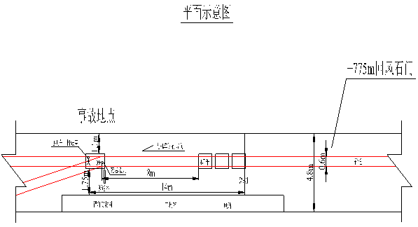 +775m回風(fēng)石門設(shè)計長度580m,已施工241m,坡度3‰,直墻半圓拱斷面, 巷道凈寬4.8m,凈高4m,凈斷面積16.81㎡,支護(hù)方式為錨網(wǎng)索噴。巷道內(nèi)鋪設(shè)軌道軌距為600mm,事故地點鋪設(shè)單道。