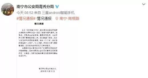 南寧市公安局青秀分局微博發(fā)布情況通報(bào)↓↓↓