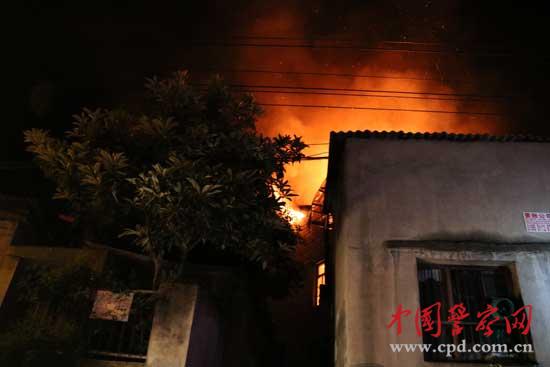 中隊官兵到達(dá)現(xiàn)場后,只見起火民房火勢較大,正處于猛烈燃燒階段。消防官兵經(jīng)現(xiàn)場詢問知情人和火情偵察得知,起火點(diǎn)是二樓右側(cè)的一間房屋里的煤氣罐,并發(fā)生了一次爆炸,火勢把二樓4間房房頂全部引燃,二樓房間地面被炸穿,火苗落到一樓室內(nèi)引燃了一樓的一間房屋,屋內(nèi)無人員被困。