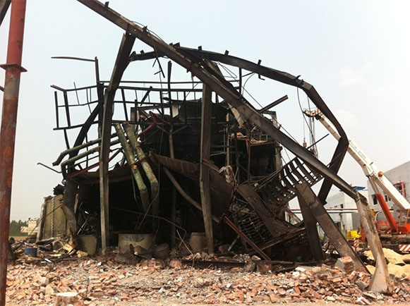 至5月18日12時,事故車間現場基本清理完畢,所有物料已于5月27日全部轉移。經環(huán)保部門檢測,本次事故未對周邊大氣、水源造成環(huán)境污染,周邊企業(yè)及人民群眾生命財產未受到事故影響。